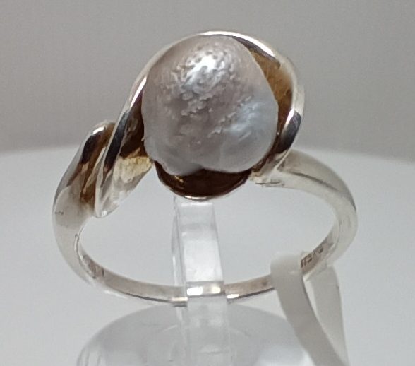 Natural Mississippi Pearl nugget ring set with one white nugget pearl with great luster
