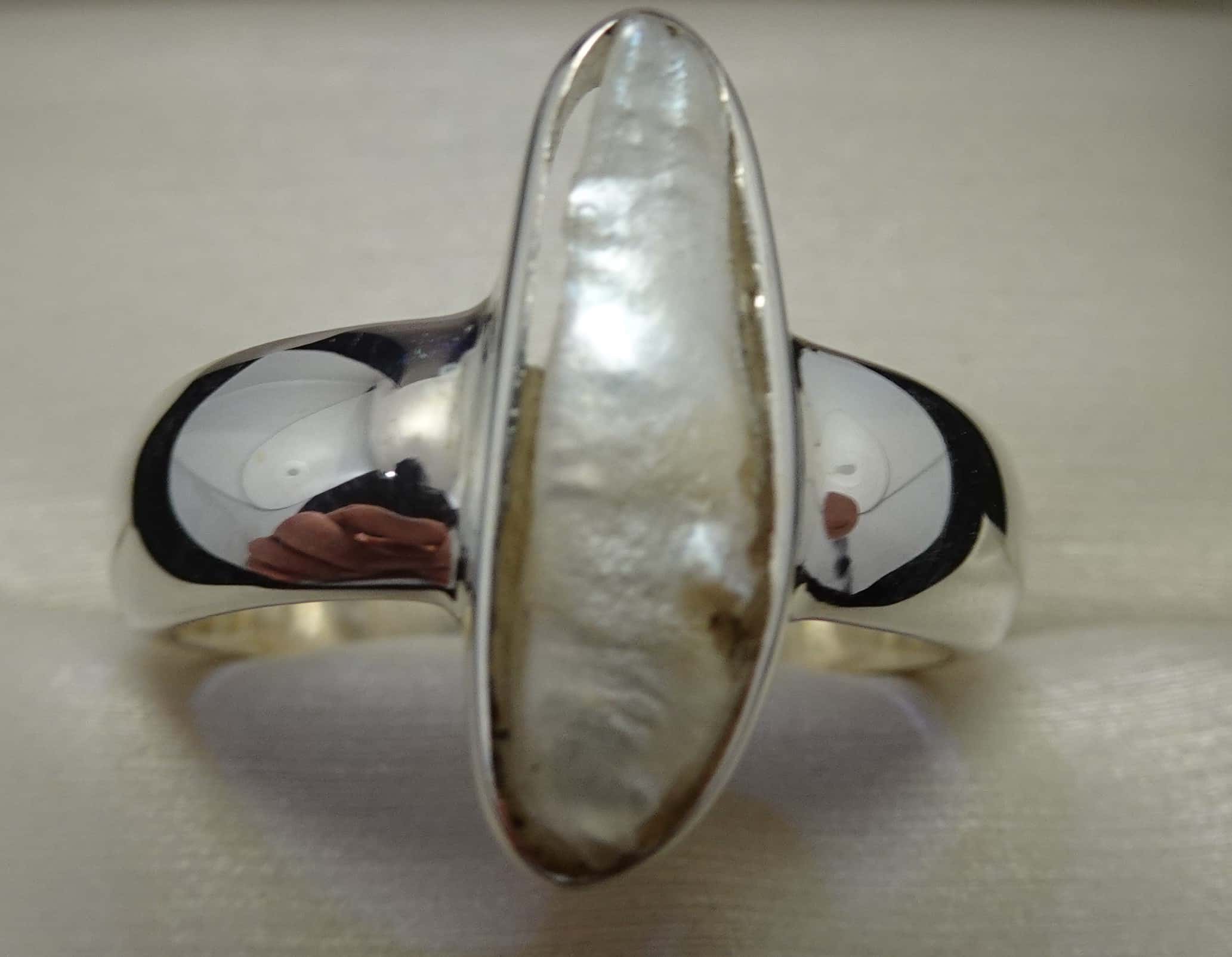 NATURAL LPP NUGGET RING STERLING SILVER PEARL IS WHITE WITH GREAT LUSTER