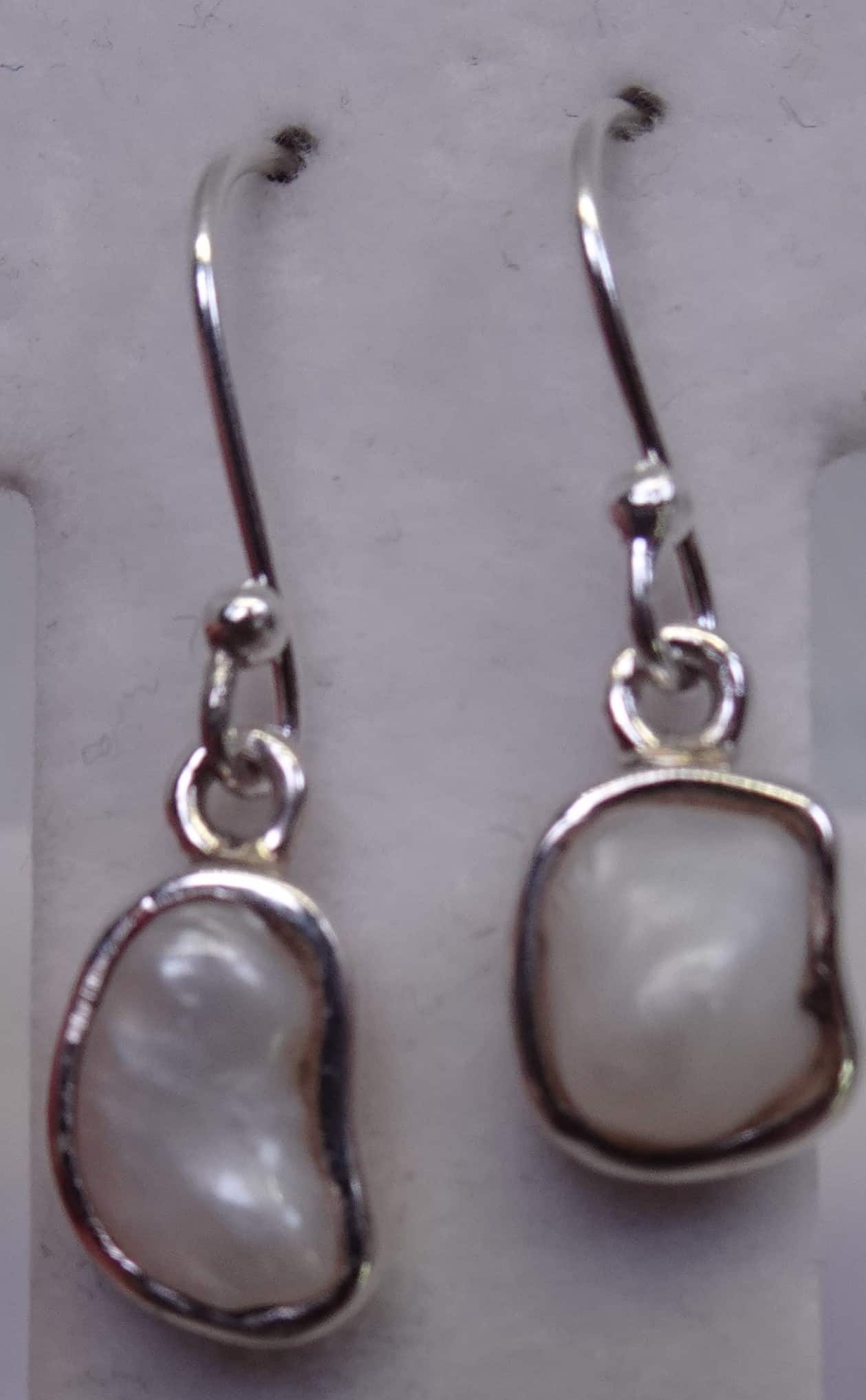 Natural Mississippi river pearl nugget earrings in sterling silver