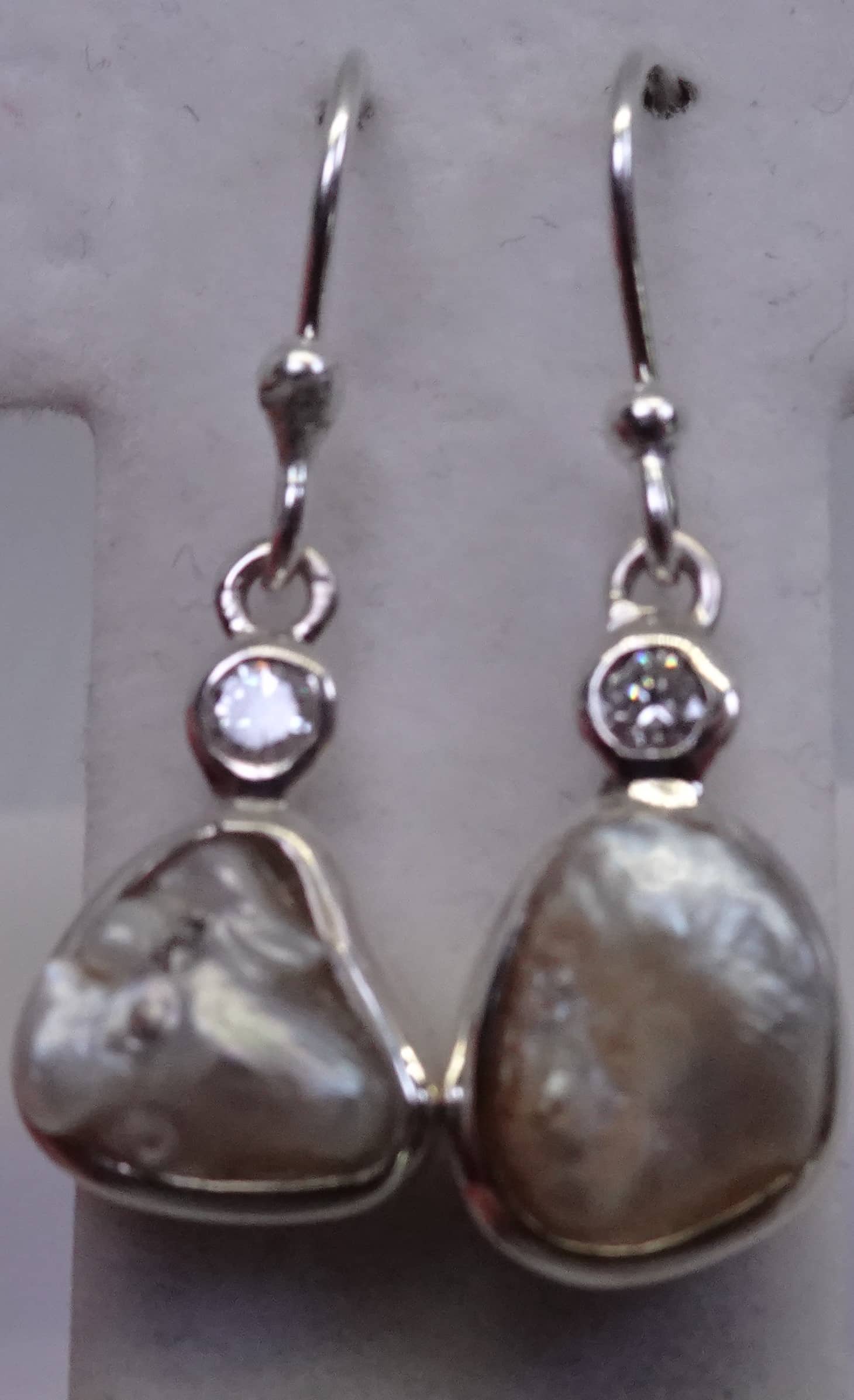 SWA353 Natural Mississippi river pearl nugget earrings with Diamonds in sterling silver quantity